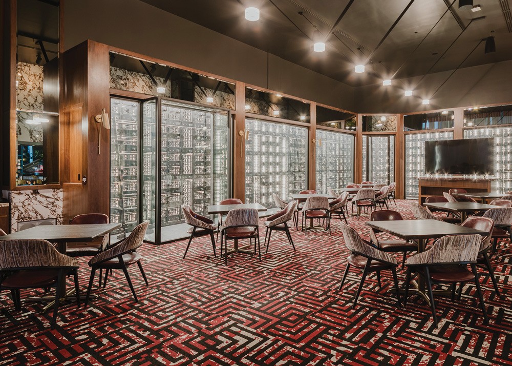The dining area is large and offers a wide variety of comfortable seats, from private rooms to secluded booths to a cozy bar. Dining in the The Vault means being surrounded by members’ wine lockers, housing bottles accessed via a biometric security system. A second-floor loft offers a private space with top-quality A/V amenities for private screenings.