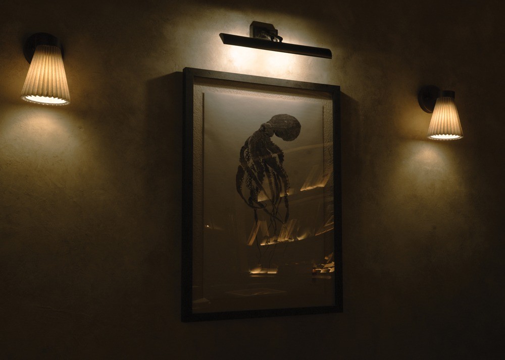 Art plays a key role in the design, with classic Gyotaku art by Dwight Hwang lining the walls along with vintage photography showcasing Tokyo in the 1970s.