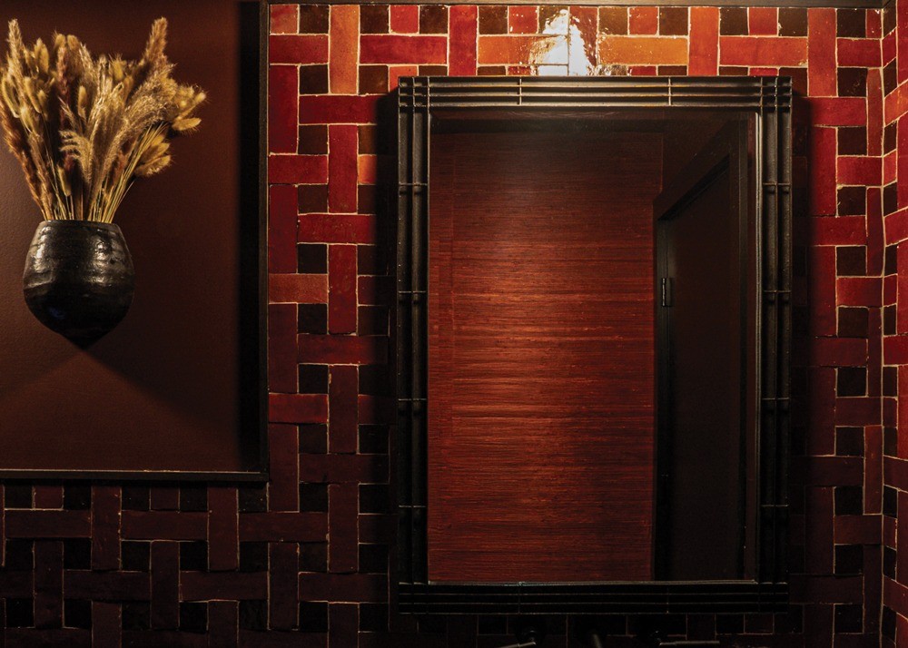 With a touch of timeless opulence, the serene and inviting space merges modern sophistication with dark and moody, natural elements with layered textures, handmade ceramic tiles and locally sourced woods.