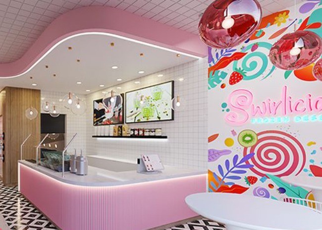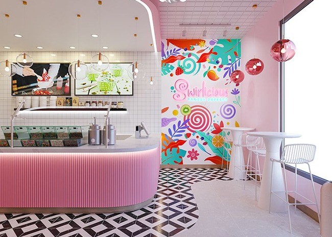 Alternatively, Swirlicious looks exactly how you'd expect. A new frozen yogurt brand opened in Newbury Park, Calif., offering sugar-sweet interiors.
