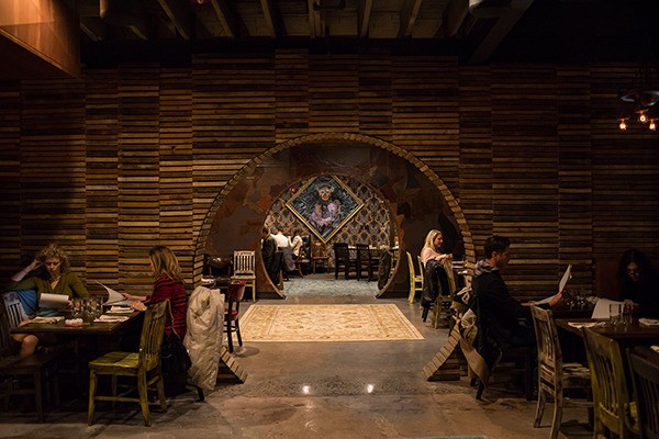 Dubbed The Hollow, the 200-seat main restaurant area with a 700-square-foot patio is reminiscent of an owl refuge with a circular entrance “cut” out of a tree-like wooden wall.