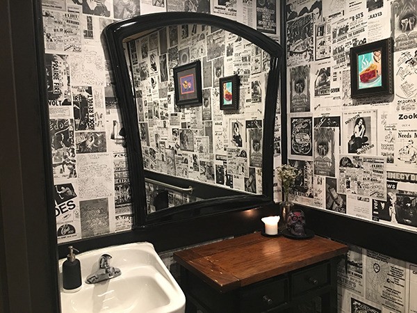 The musical theme continues in the bathroom, where walls are hand papered with original Detroit concert posters from the 1970s and 1980s. In the semi-open kitchen, offerings include pizzas as well as brunch service on a constantly changing menu.
