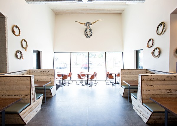 Combining neutral earth tones, reclaimed barn wood and elements like imported Oaxacan tile from Mexico, Lewis Barbecue is the epitome of modern rustic. Banquettes are made from horse stable wood, complete with original paint and bite marks.