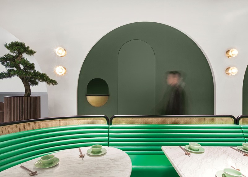 Designed by NC Design & Architecture Ltd. (NCDA), the restaurant was inspired by the idea of a Chinese garden, which is traditionally a sanctuary to form an intimate connection with nature and has a romanticized place in Chinese culture as an oasis for relaxation and family time.