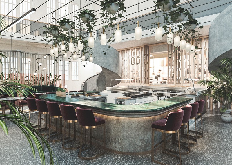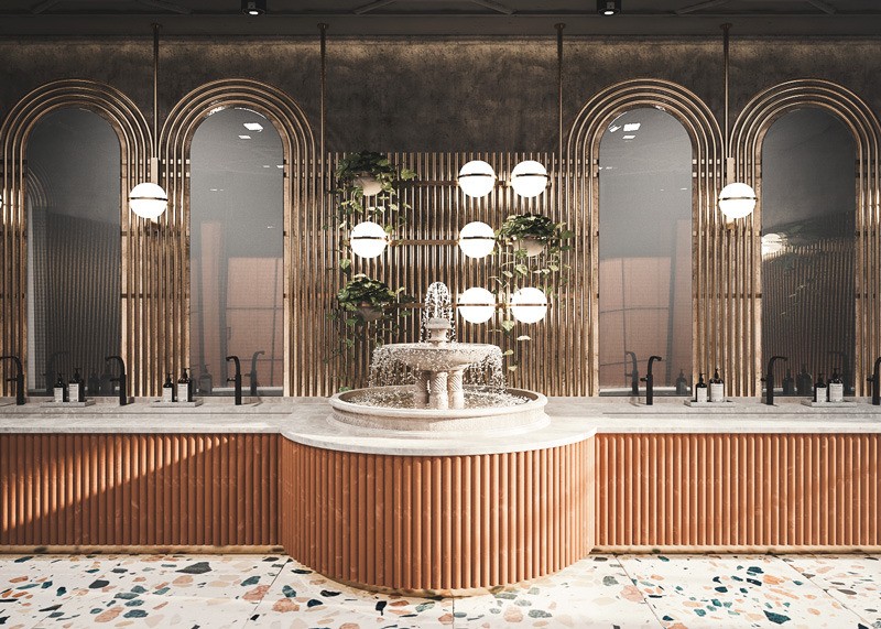 Kailo is a loose translation of the Indo-European word for “health.” The studio drew inspiration from the Roman era. The selections of materials reflect both the Roman aesthetic and sustainable ethos via the use of era-specific materials like obsidian and tadelakt (plaster). The ancient materials were combined with recycled stone, marble and altrock surfaces with the aim of using 80% sustainable materials throughout the design, according to the agency.