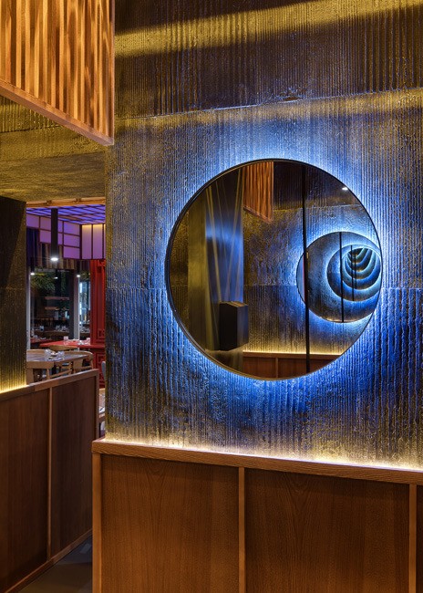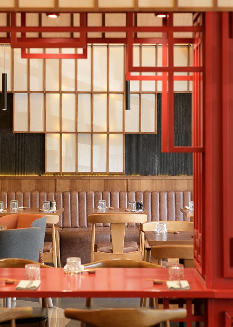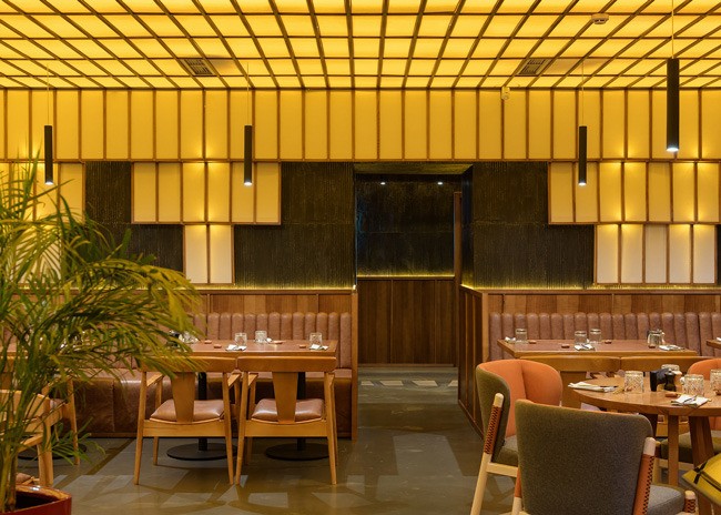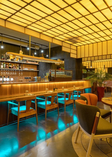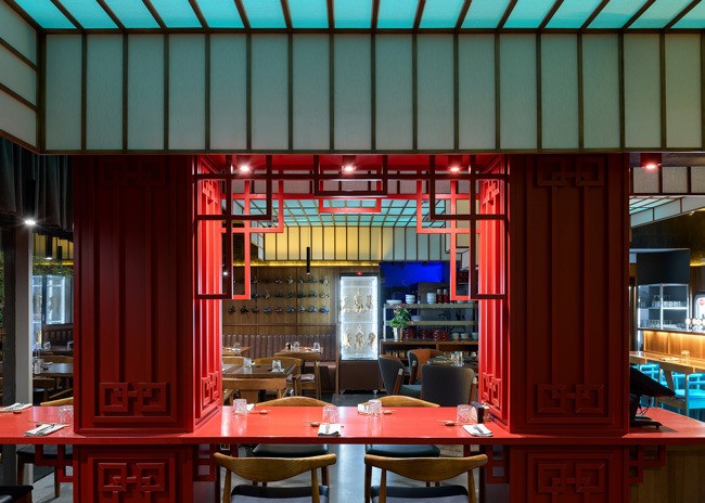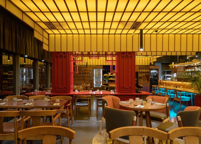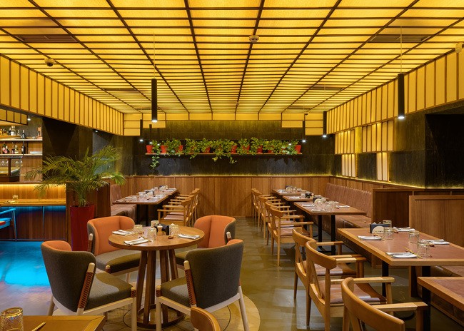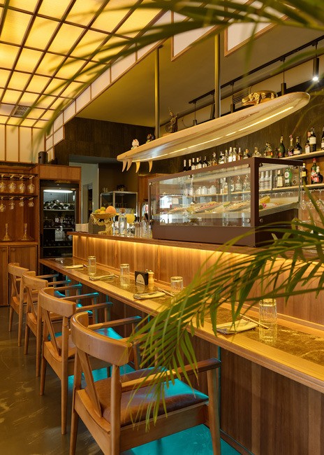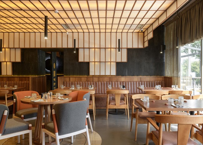 Aleksandr Yudin and Vladimir Yudin — the design team behind the restaurant — took inspiration from the state and the idea of California as a sun-drenched coastal region with a long-standing love of pan-Asian cuisine.