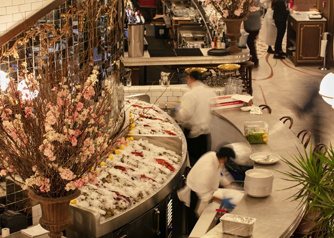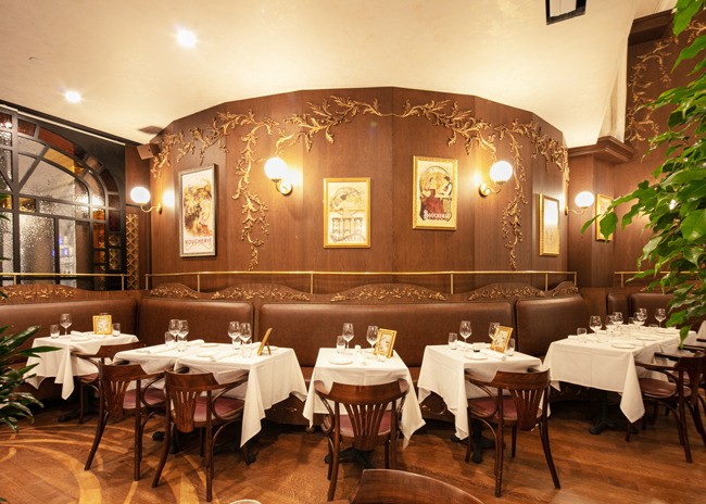 The French-style brasserie stretches along the entire block of the 6½ Avenue of the Americas development. The art-nouveau-inspired restaurant spans 5,500 square feet and seats more than 400 diners in the dining rooms, bar and mezzanine areas and an additional 150 on the year-round heated and covered patio.