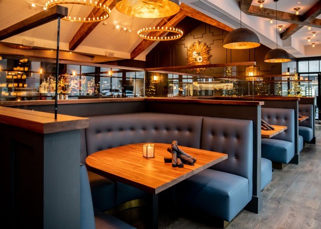 The new restaurant boasts a digitally enhanced, guest-focused service model. The goal is to make the experience as customized as possible. To order, guests can scan digital tiles around the dining room, living room pods and outdoor pergola to view menus and order directly from their phones. Their order will then be served to them wherever they’re located in the restaurant. The new service concept will free guests to start on a sofa with friends and cocktails, move to a table for a chef-driven meal, and then retire to the fire pit under the pergola. Staff will offer customized service and handle everything from checking in on guests to clearing tables, running food and more.