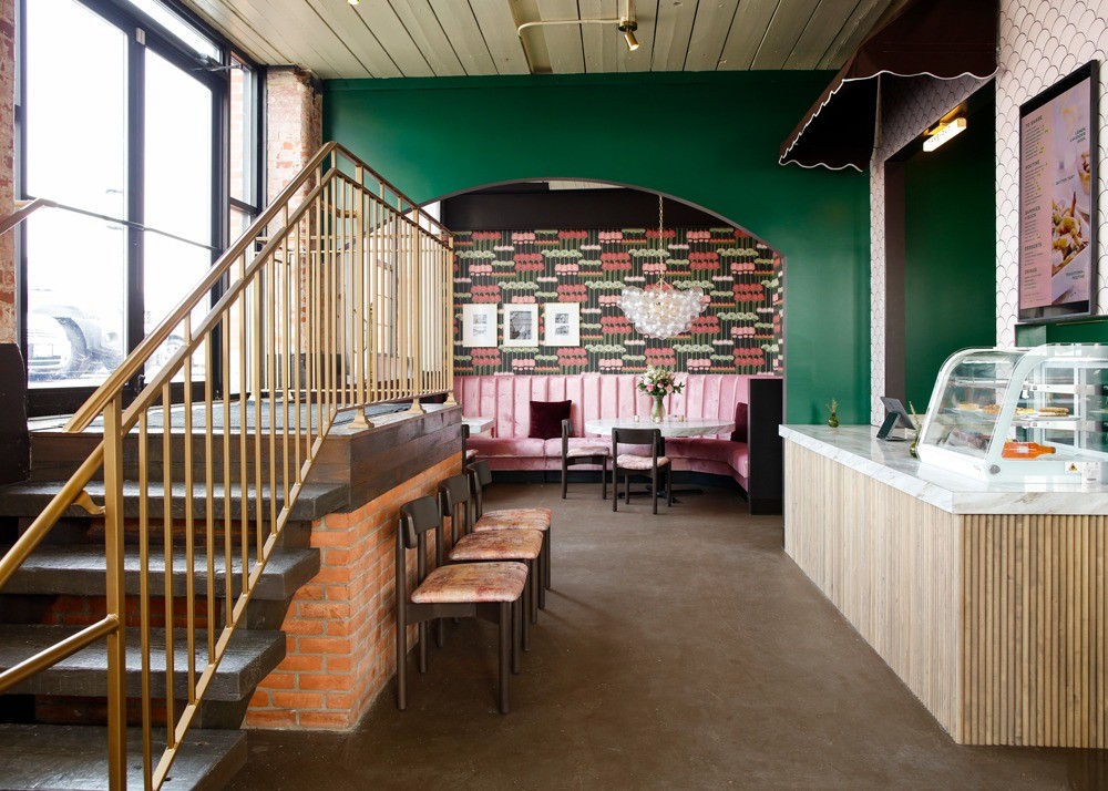 Jason Longo of Jason Longo Interior Design led renovations that transformed the existing space from rustic and dated to a cozy and colorful Parisian-style cafe. While the outcome was rosy (peep the banquette!) the renovation was not without its design challenges.