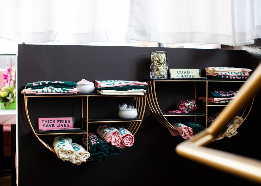 After working in conjunction with a branding/graphic designer, Longo and his team created an entirely new look and feel for the brand. What emerged was a glam, playful and hyper-feminine space that pays homage to female-owned and operated Petit Poutinerie, Ronnie McClive and Lizzie Clapp.
