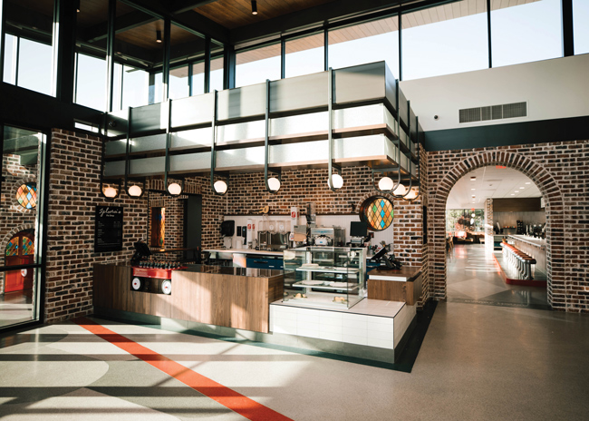 Named for a long-time Dwarf House pie maker, Zelma’s Pie Shop in the lobby sells fresh-baked pie and beverages. Images courtesy of Chick-fil-AWhen Chick-fil-A’s design team set out to create a new brand home for the iconic chicken sandwich chain, it did so with the objective of developing a multifaceted, interactive experience. It would, first and foremost, be a working restaurant, but it would also be a place for families and the community to gather. And it would be an inspiring destination designed to tell the company’s story and honor its heritage. Built on the site of Chick-Fil-A founder S. Truett Cathy’s first restaurant, the 572-square-foot Dwarf Grill, later renamed The Dwarf House, the new facility does all of that and more.