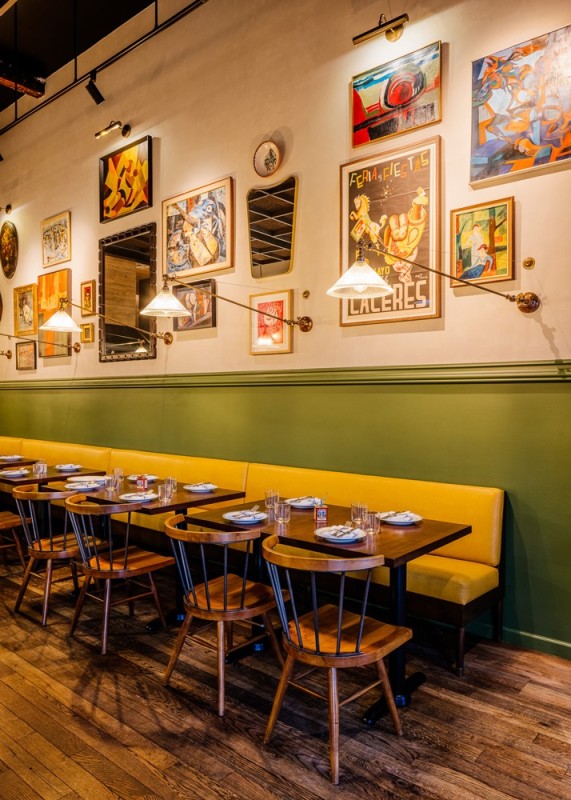 "Given that we had designed the original spaces for the Moruno concept several years ago," explains Greg Bleier, founding principal, Studio UNLTD, "we tried to stay true to what the brand was about, which is a timeless ode to the tapas bars of Spain with a hint of mid-century modern tonality and detailing."