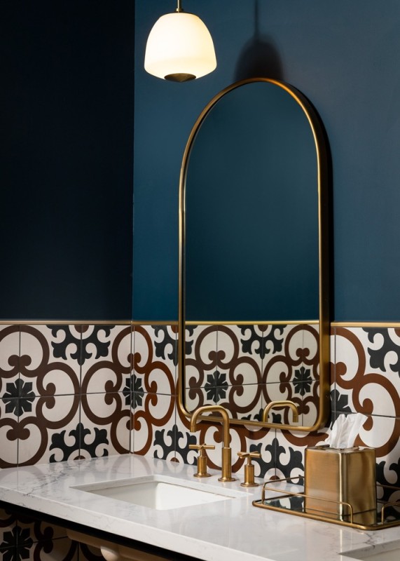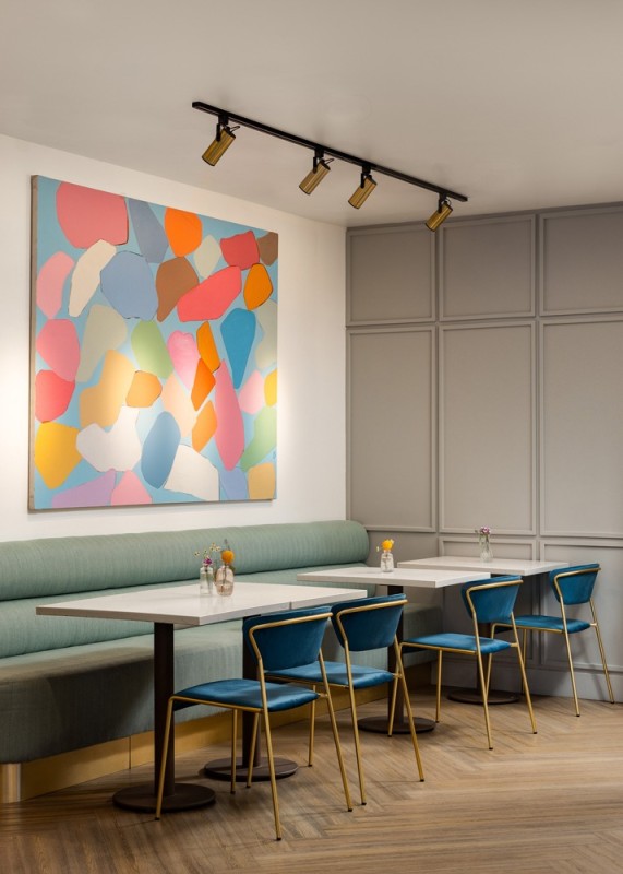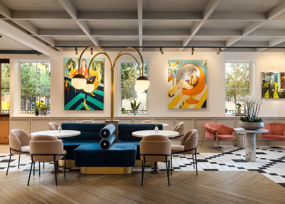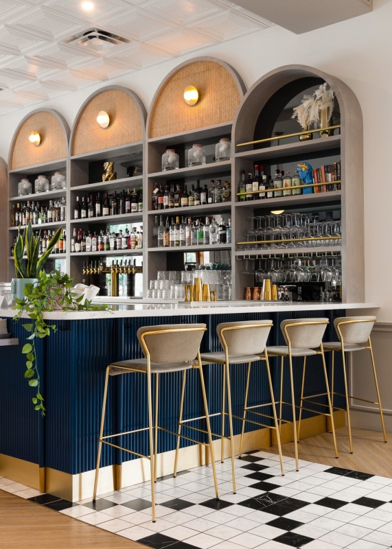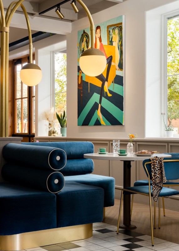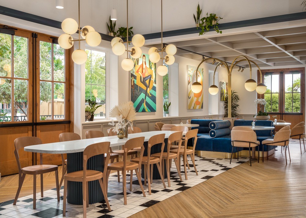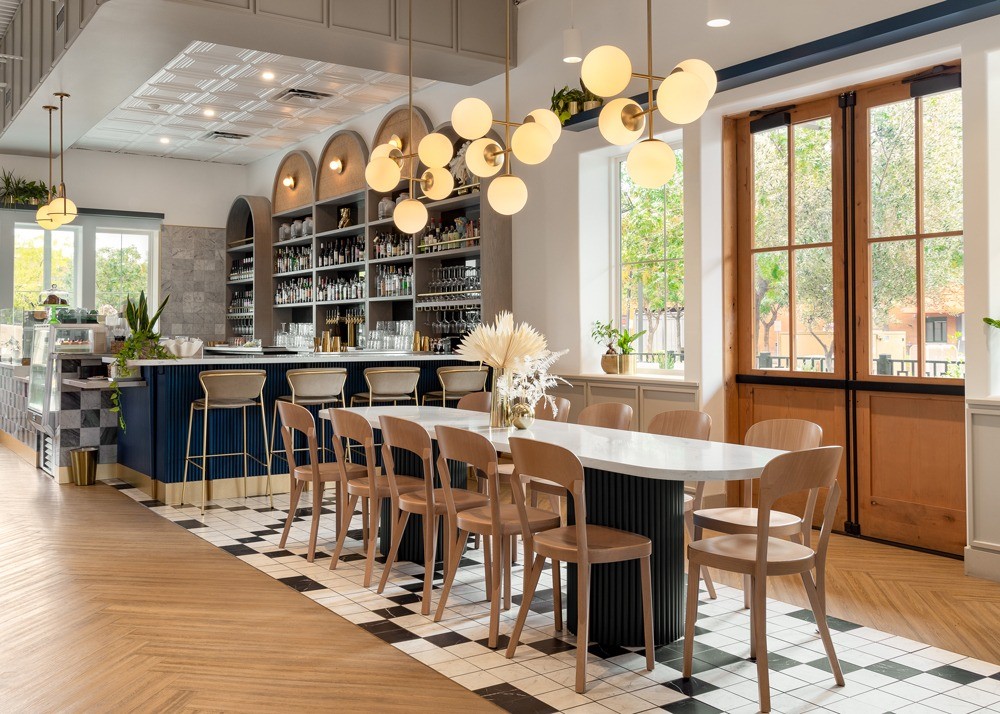 Designed by House of Form, the 2,800 square-foot space hopes to transport guests to a French street cafe. Details include luxe textures, walls adorned with an elevated collection of art, and custom tile arrangements, as well as custom quad banquettes.