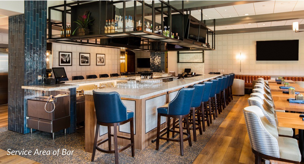 In order to accommodate various guest demographics and dayparts, both the lounge and veranda offer various seating options. In addition to the bar seating, guests find high-top tables, banquettes and community tables, which are often used by the younger patrons and groups to meet.
