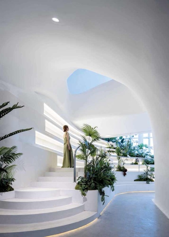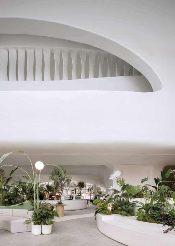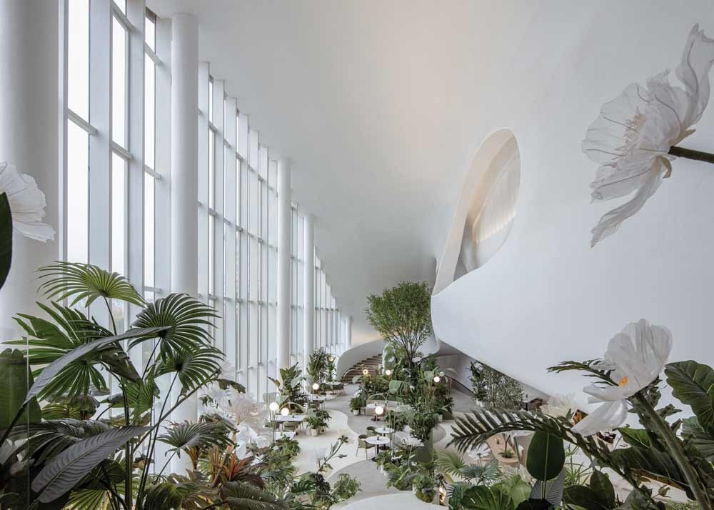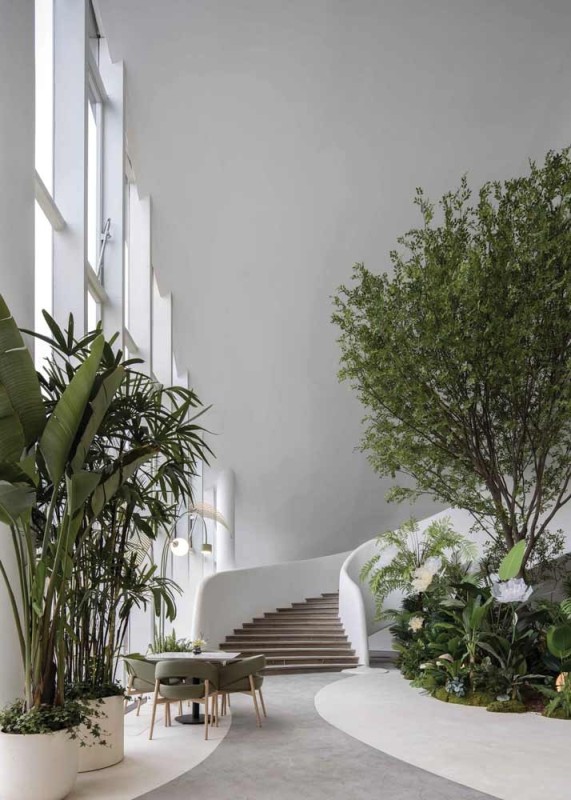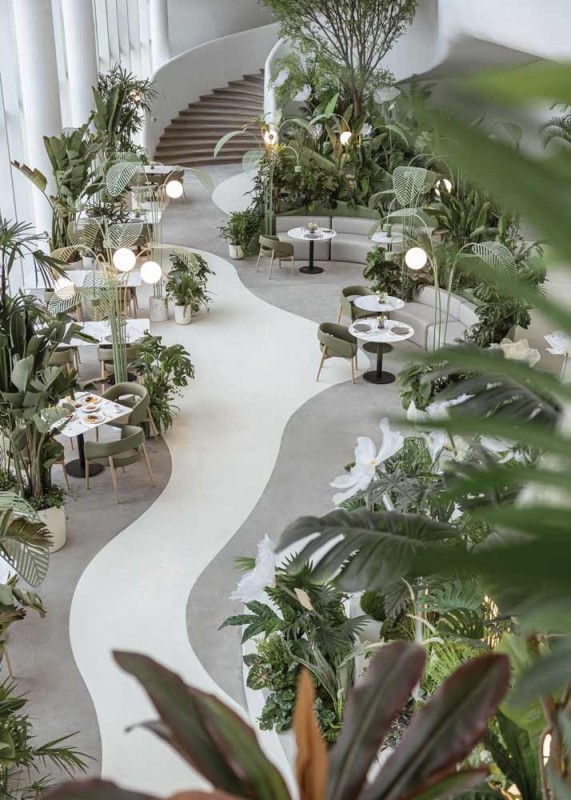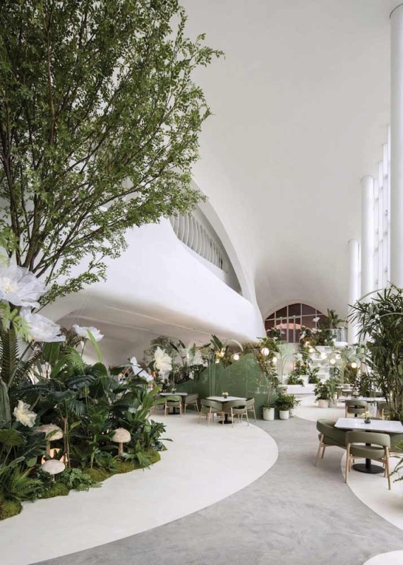 The Bantang hot springs in Chaohu are a popular destination for tourists with an interest in wellness. Ippolito Fleitz Group designed a restaurant space that incorporates natural water features into a dynamic dining experience.
