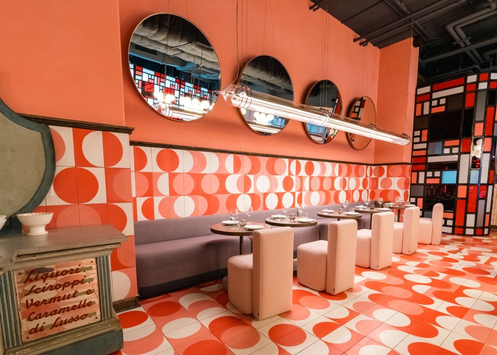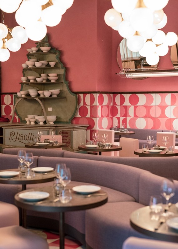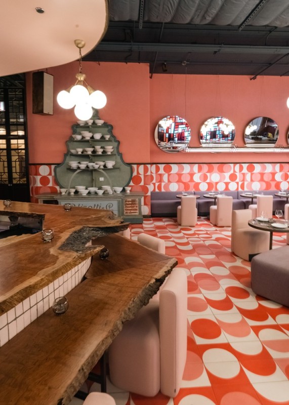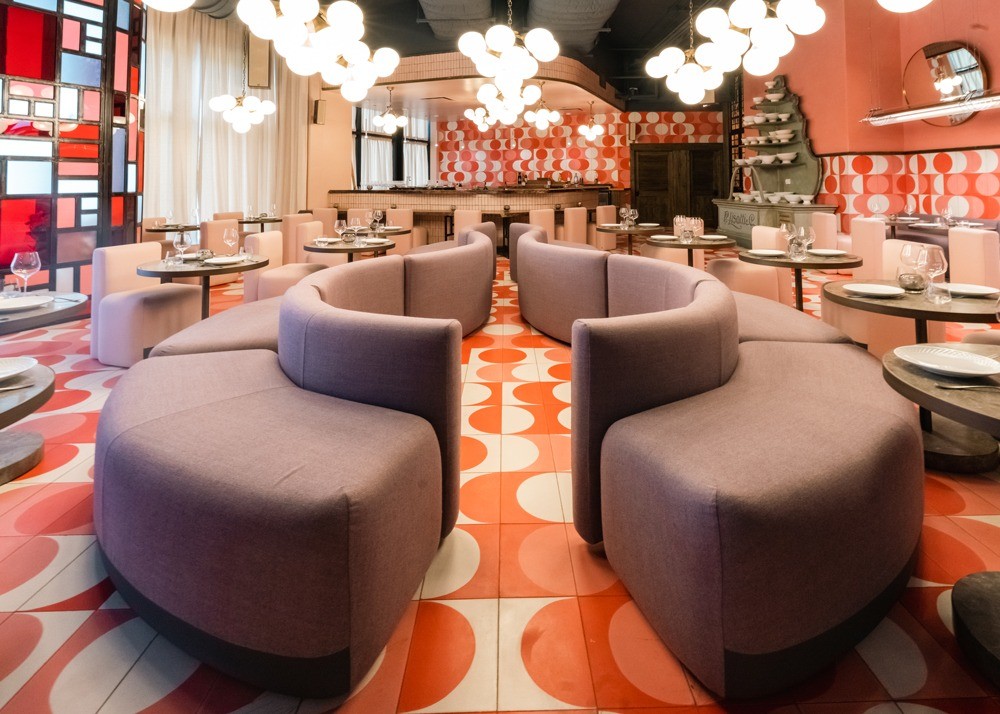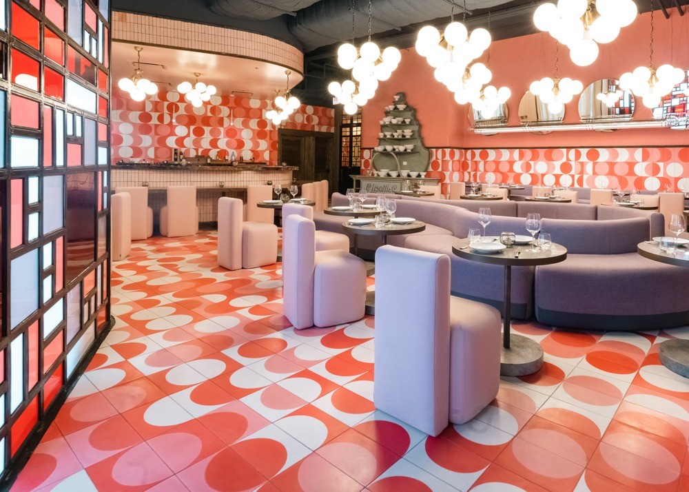 Designed by Maison Bonhomme, this rose-colored restaurant recently opened in Chicago’s West Loop neighborhood. In this modern spin on a classic French bistro, French New Wave meets fire-cooked menu items, world-class cocktails and natural wines. Coquette pays tribute to the style of Mondrian, YSL, Godard and Bauhaus, using bold colors and simple geometric shapes to express a postmodern aesthetic. Vibrant interiors fashioned with curvaceous furnishings wrapped in soft textures and a palette of pinks and lavenders offer a distinct, cohesive vision.