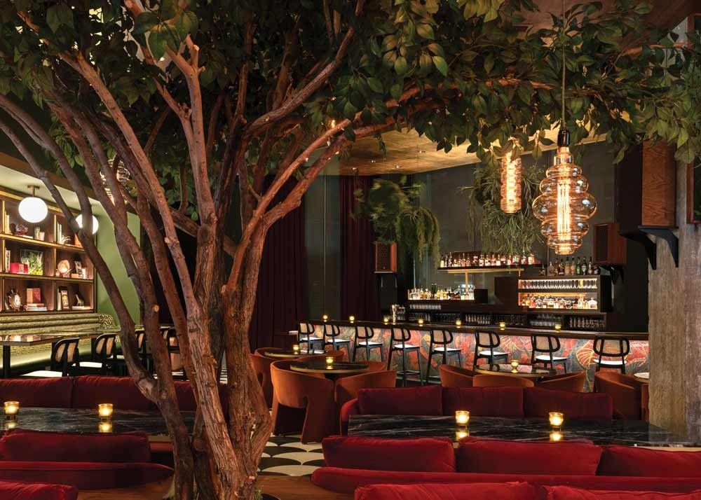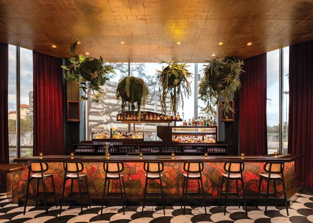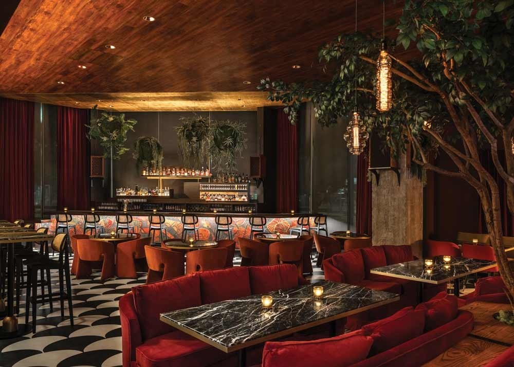 Designed by Gin Braverman of Gin Design Group — who was also Cordúa’s childhood babysitter — the 4,000-square-foot restaurant fuses familiarity and modernity. The designer drew inspiration from shared childhood memories of Cordúa’s family home and layered Latin American, Lebanese, and Mediterranean textures and art over classic midcentury materials and colors to create an intimate and cozy space.