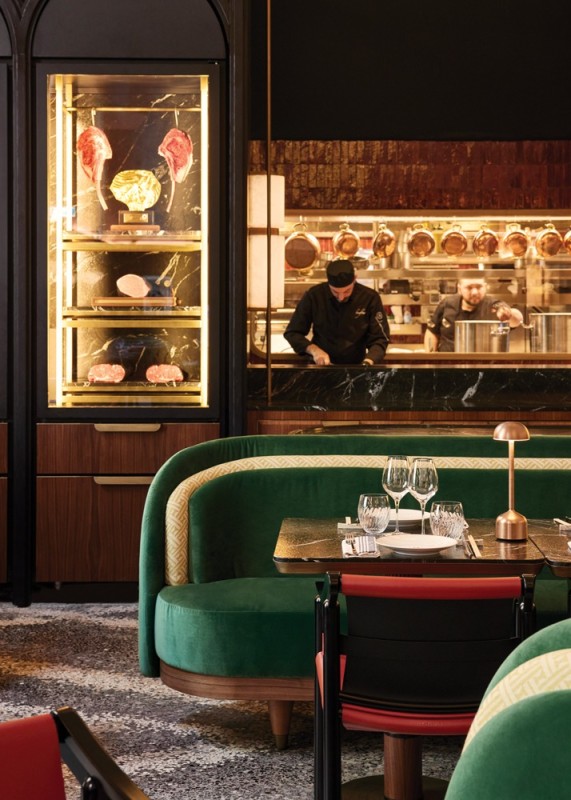 Beefbar, a glamorous meat-focused fine-dining chain with outposts across the globe, opened its first location in Milan, Italy. The design by Humbert & Poyet of Monaco draws inspiration from major figures of Milanese style from the 1940s to the 1960s.