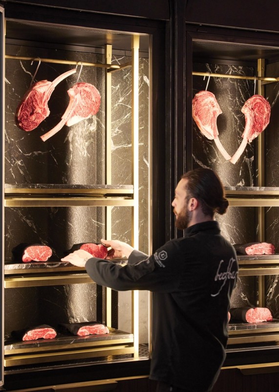 Like the brand’s previous restaurants, Beefbar Milan offers and celebrates meats in globally popular recipes. In homage to Italian gastronomy, the Milan menu includes wagyu and veal meatballs, pâtes à la carbonara au bœuf de Kobe, and risotto with lemon and braised veal osso buco. Beefbar also offers its own version of black cod miso. The wine list provides a sampling from prestigious cellars and small producers from around the world.