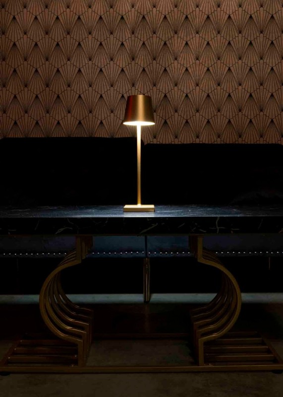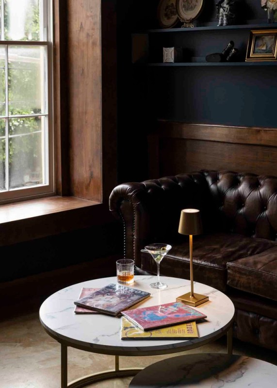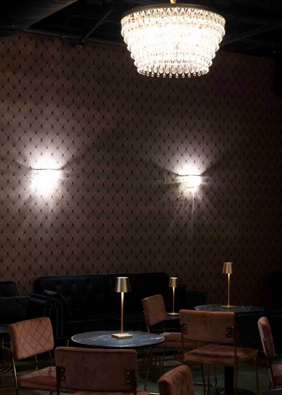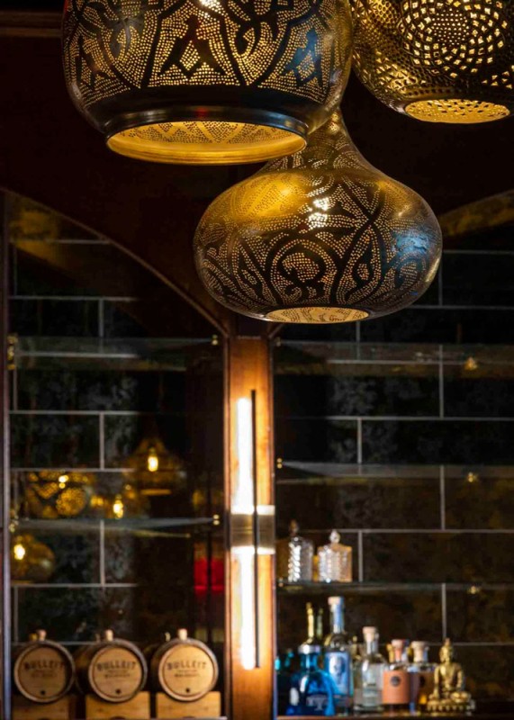 1920's art deco charm is "coupled with a decadent atmosphere of warm lighting, rich leather, sumptuous velvet, and objects d'art. The space is an exquisite blend of Americana, European, and Asian aesthetics," says Michelle Van Jura, owner and partner, The Habit.