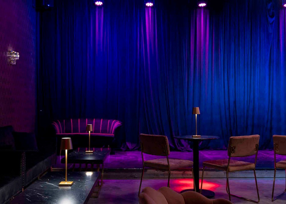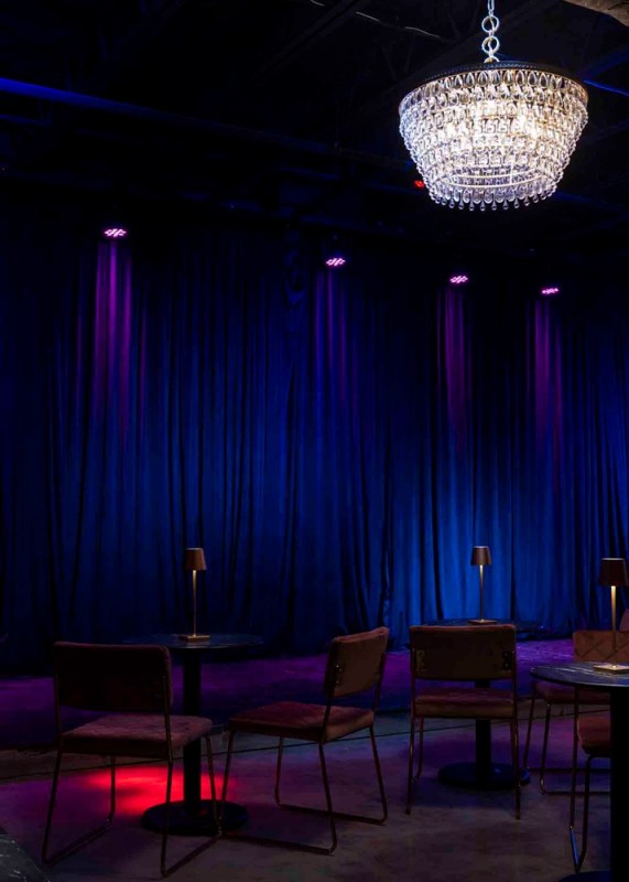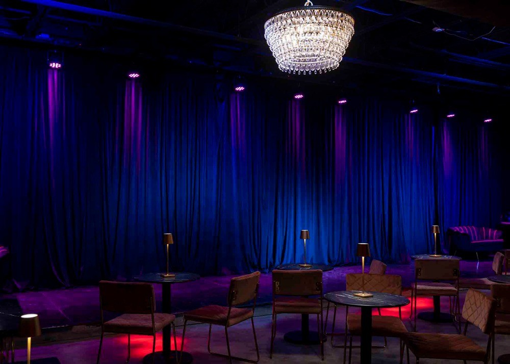 The hybrid of dining and entertainment provides space for live music, burlesque performances, and comedy acts. The venue's second-floor VIP lounge and the rooftop space are available for private events.