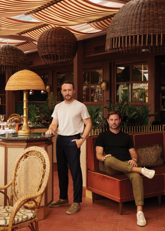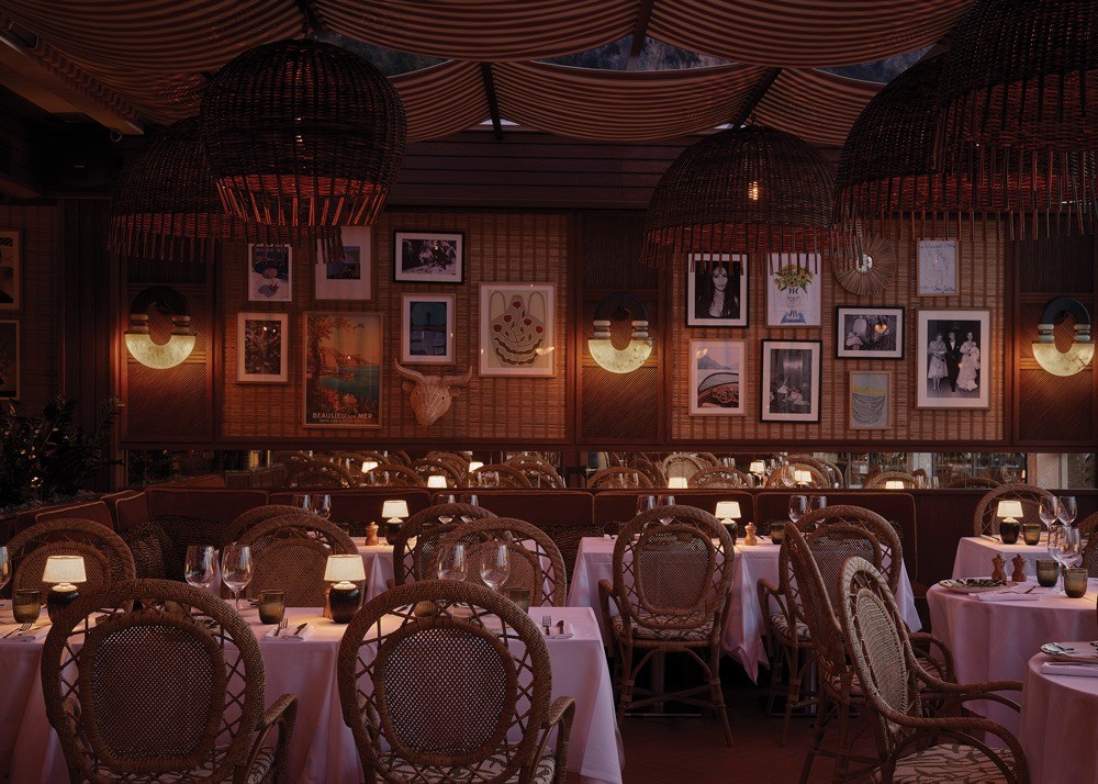 In 2023, three friends from neighboring Monaco — Riccardo Giraudi, Philippe Schriqui and Patrick Gioannin — purchased the restaurant and set about modernizing it. They had enjoyed visiting the iconic restaurant for decades. French design duo Humbert & Poyet embraced the challenge to update the restaurant without losing what made it special. The new design incorporates both nods to the original movie and the original design of the space as well as the exceptional locale.