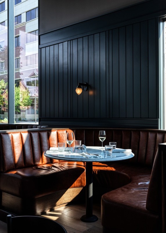 With a design that centers on authenticity in material and form, Percy serves as the warm heart of Hearth, a 161-unit mixed-used complex in downtown Boise, Idaho. An oversized bar serves as Percy’s focal point and features a wide marble countertop and far-reaching bottle display. A central double-sided banquette further defines the space and offers loose seating to create small pockets for intimate dining.