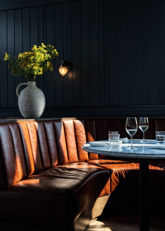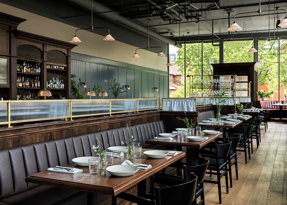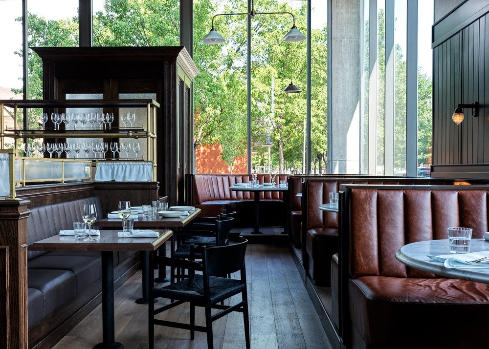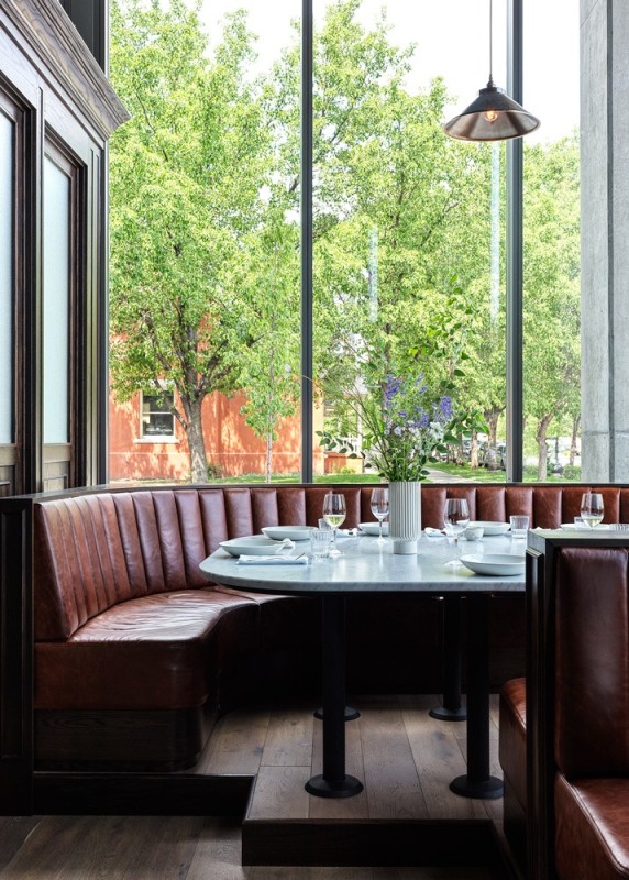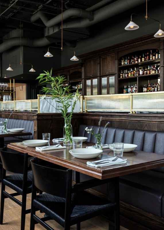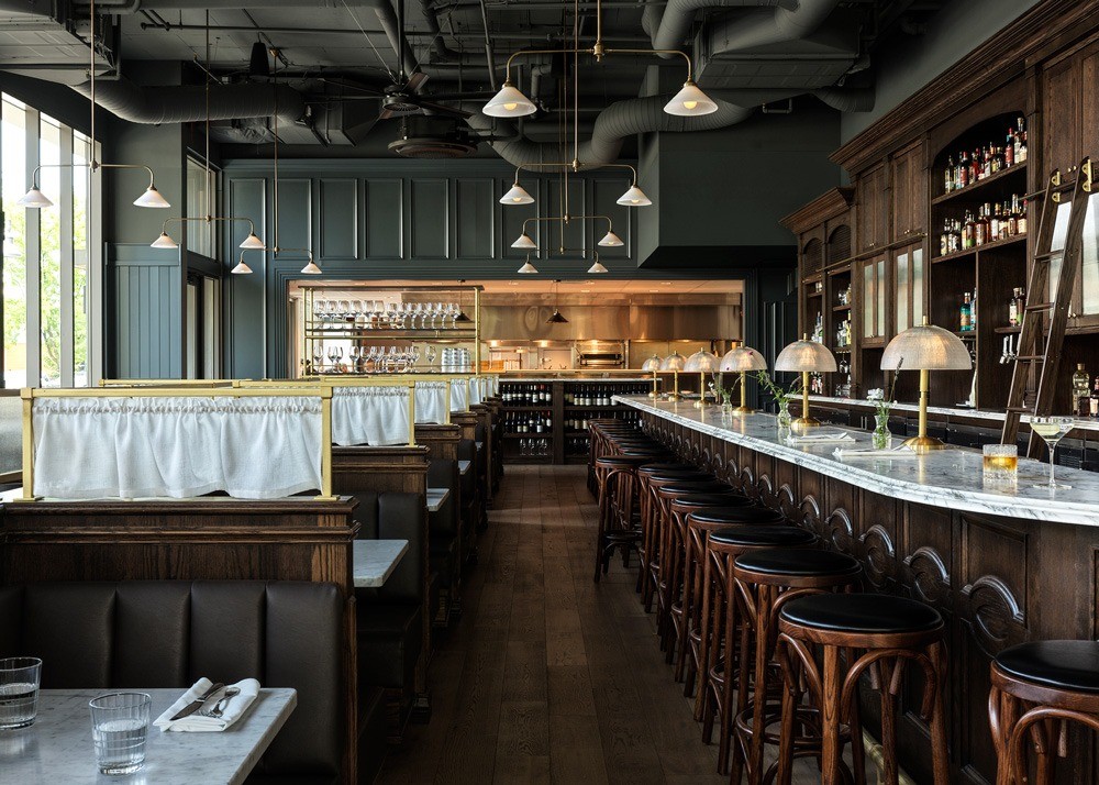 The Post Company’s design strikes a balance between fine detailing and simplicity. The exposed utilities present a raw canvas that contrasts with carefully crafted millwork throughout the restaurant. Natural wood tones pair with polished, unlacquered brass, which will patina as it ages.