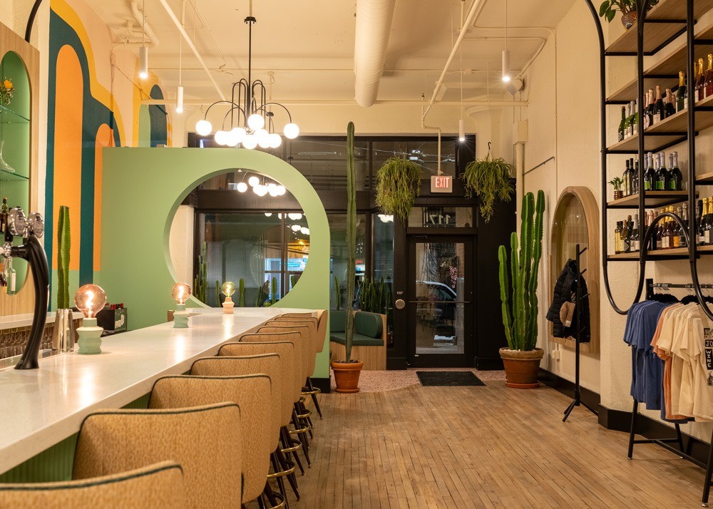 Joui Wine is a 2,000-square-foot space celebrating all things wine, as illustrated in its name which means "Enjoy." Part wine bar, part retail wine shop, the space is owned by Lauren Gay, who trumpets female-produced and organic wines.