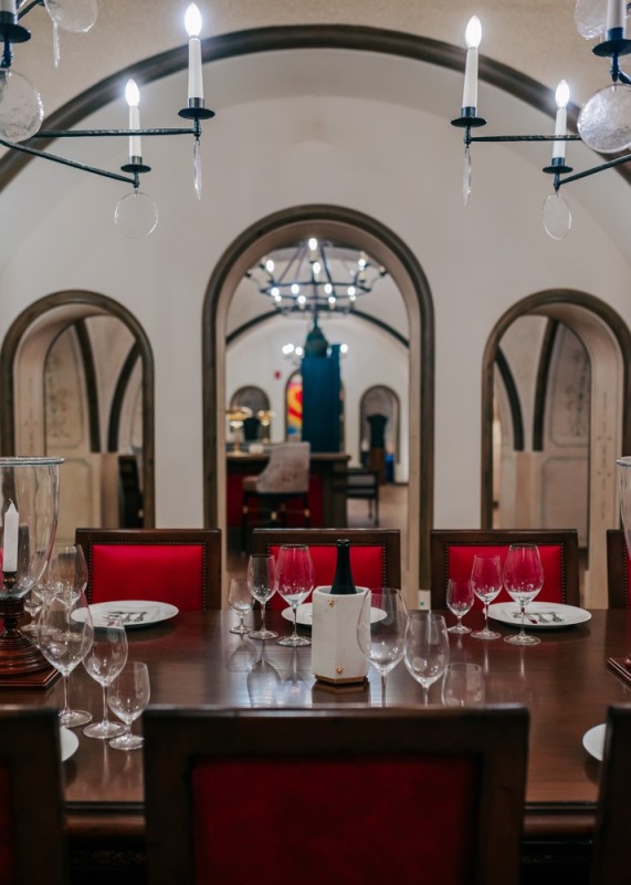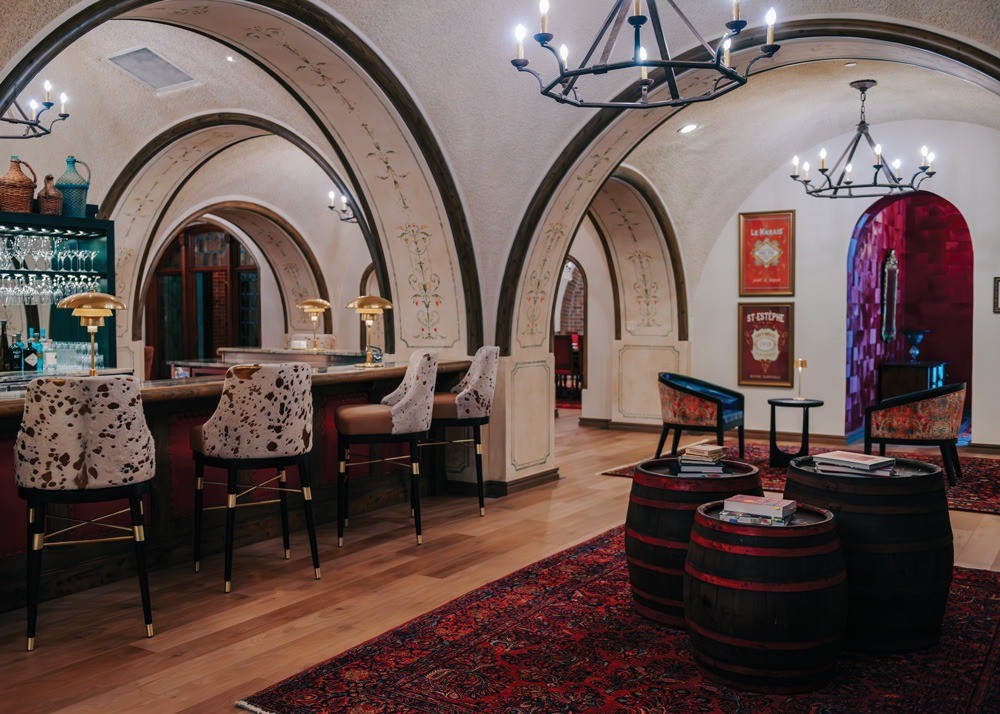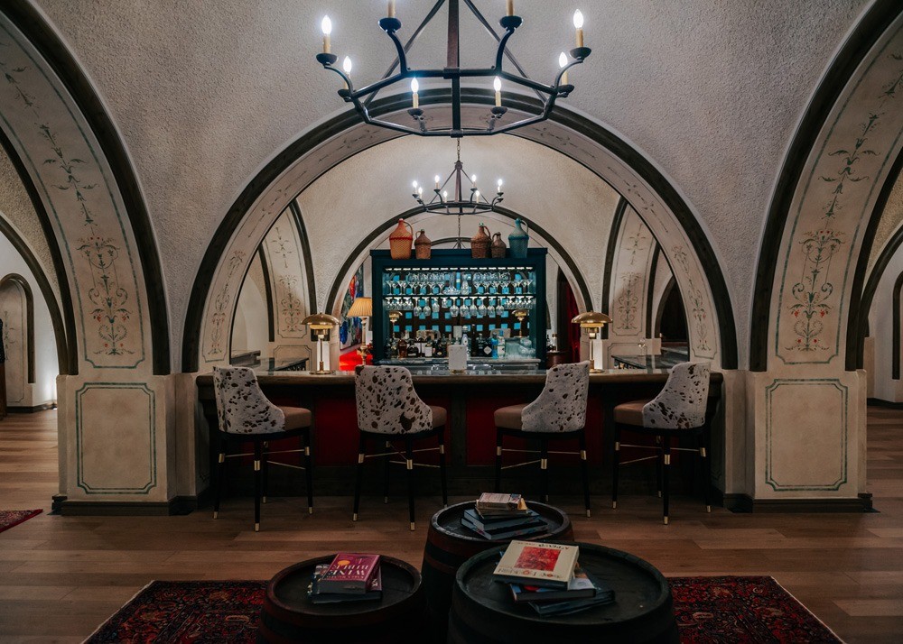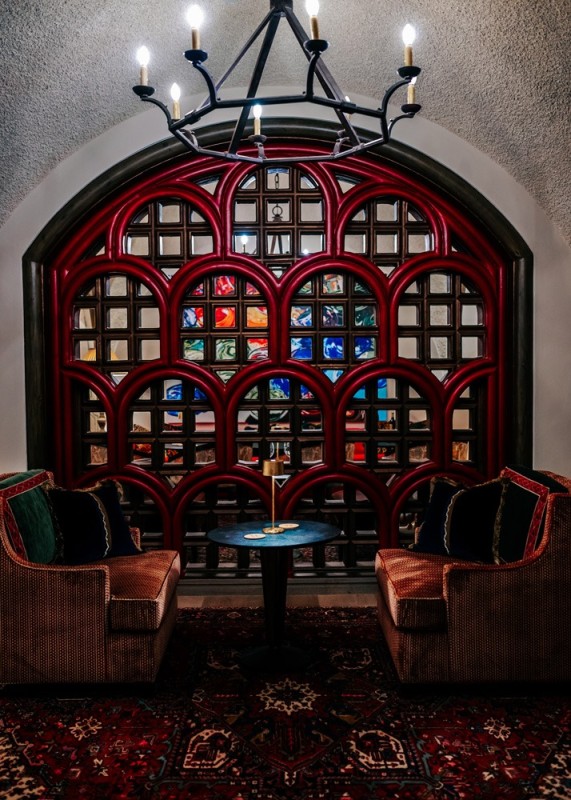 It has an underground feel, complete with arches and a medieval-style candelabra, so guests feel they’ve stepped back in time — until they glimpse the modern touches throughout that keep the grotto’s feet firmly in the 21st century.