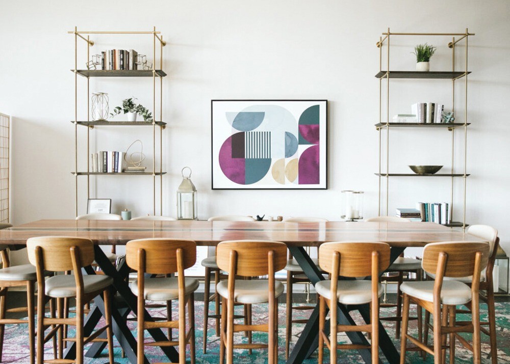 Erik Bergman, director of restaurants and bars with B. F. Saul Company Hospitality Group in Bethesda, Md., commissioned art from local artists for Wren restaurant in Tysons, Va., “to reflect their vision of the world,” he says. Most pieces are striking and add flair to the space.