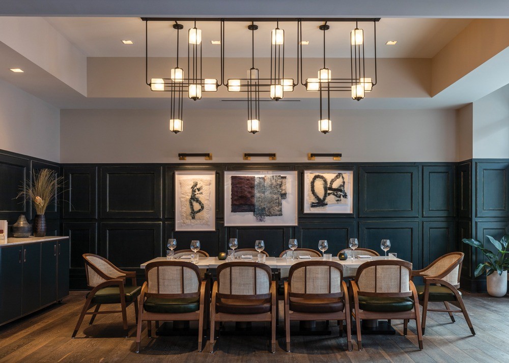 The far end of the restaurant can be closed off behind pocket doors for private dining or it can be opened up to seamlessly become additional dining on busier nights.