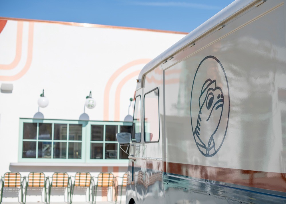 Custom touches include a vintage Ford mail truck that was restored by Dixon MotoWorks in Stevensville, Mich. The truck will sell merch on the 6,000-square-foot patio, sharing the space with a stage for live music and entertainment.