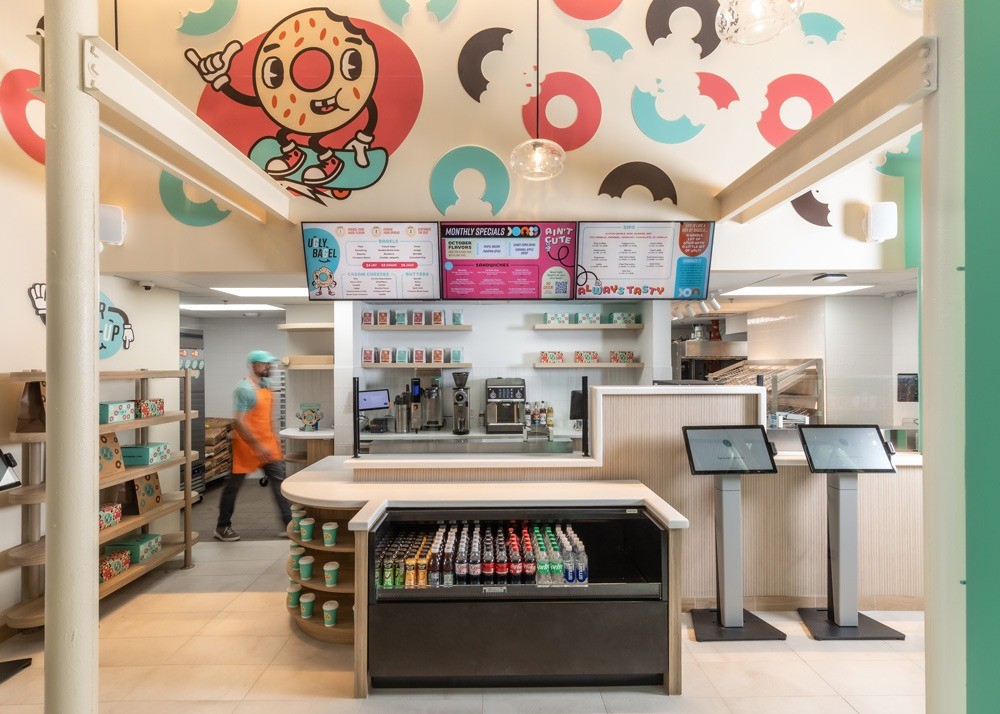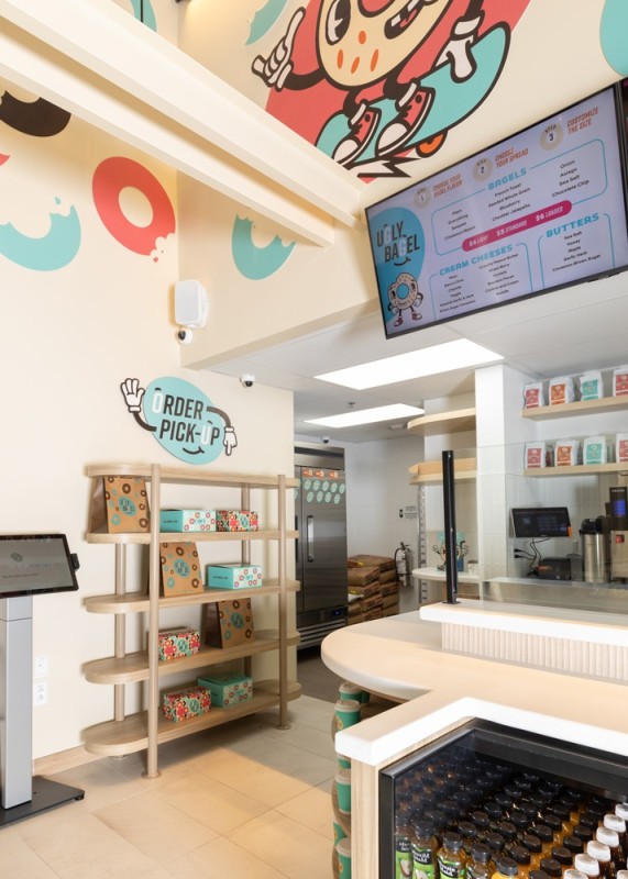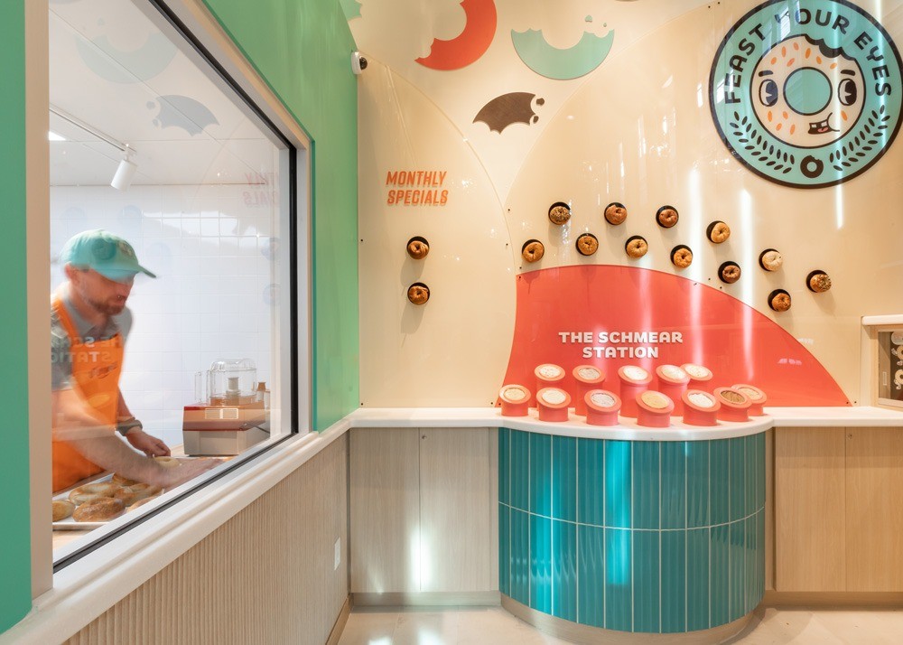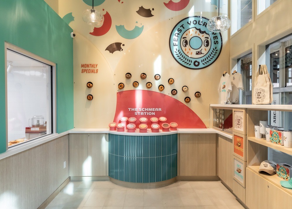Ugly Bagel partnered with Franklin, Tenn.-based Design and Engineering Inc. for the interior. Upon entering the space guests see freshly made bagels hanging on the wall to display monthly specials. Nearby sits the schmear station, which highlights various cream cheese options including bacon chive and Funfetti.