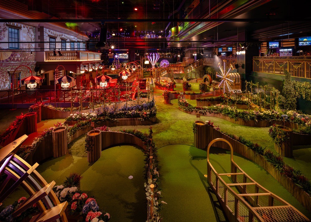 As the largest Swingers destination to date, the 40,000-square-foot venue features four amped-up miniature golf courses the brand deems “crazy golf.” The location also offers old-school arcade games, an eclectic cocktail program and more.