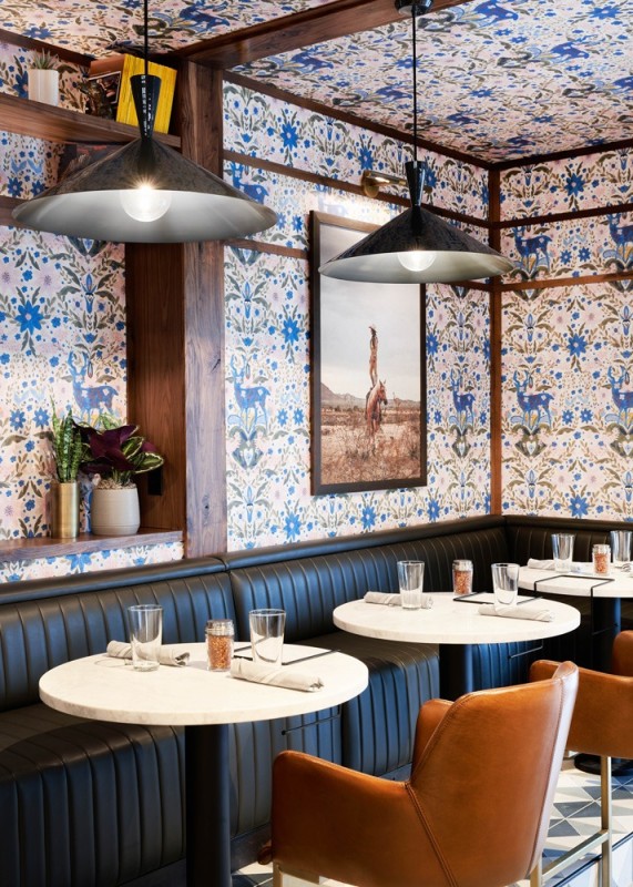 Between the restaurant’s custom upholstery, bar design, and luxury residential finishes, the 275-seat space aims to become a community gathering place.