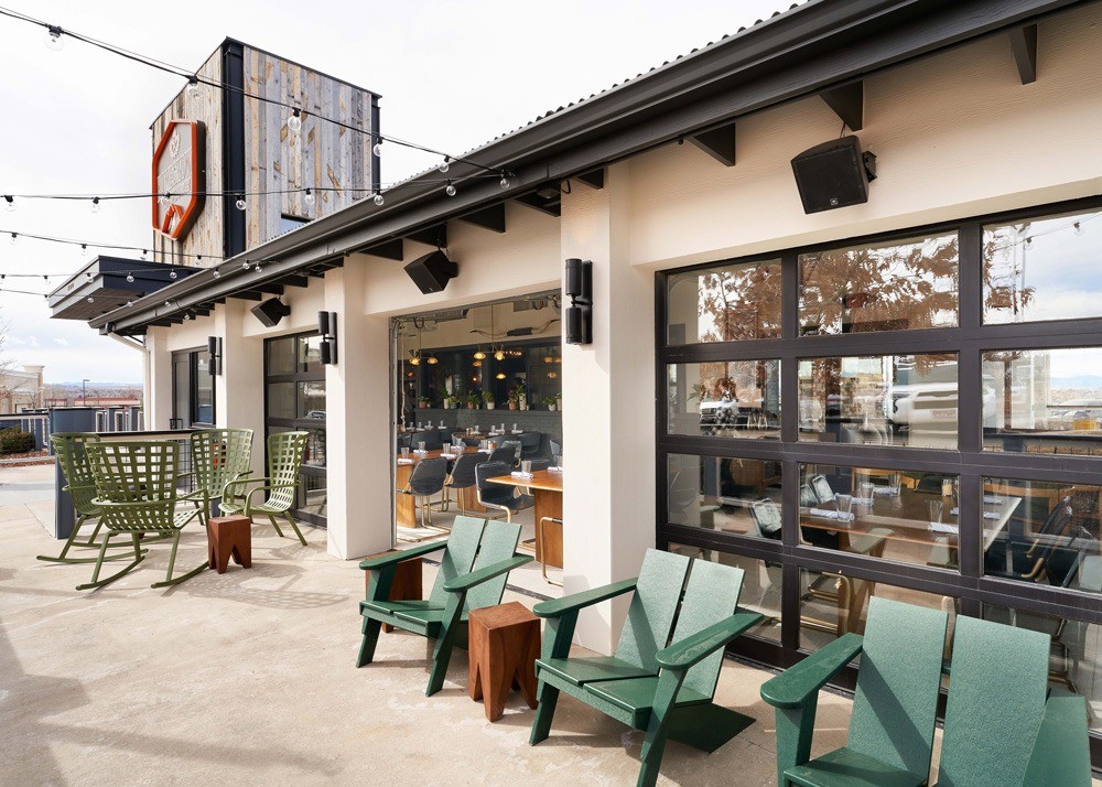 Additional custom interior elements were designed to reflect the town’s family-friendly and community-focused vibe. For instance, at the start of the 2025 summer season, an interactive play area will open. This space is designed for children, complete with a roping station where kids can practice their lassoing skills on calf roping dummies and a bocce ball court that can be watched from the bar and outdoor patio. The large outdoor patio space has potential for community events like outdoor concerts, private parties, and more.