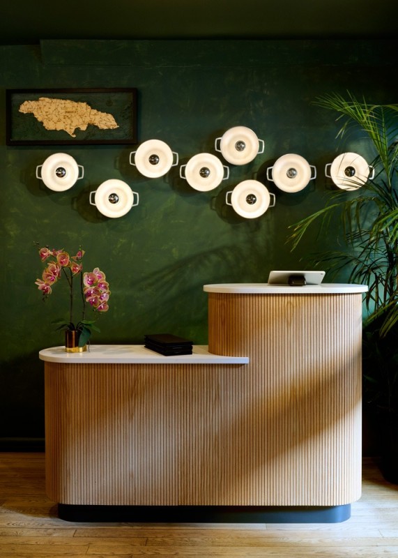 Lawrence tapped Studio For to design his two-story restaurant in Midtown Manhattan. The chef wanted to create a space that evoked the feeling of "home" for Jamaican immigrants residing in New York and the United States.
