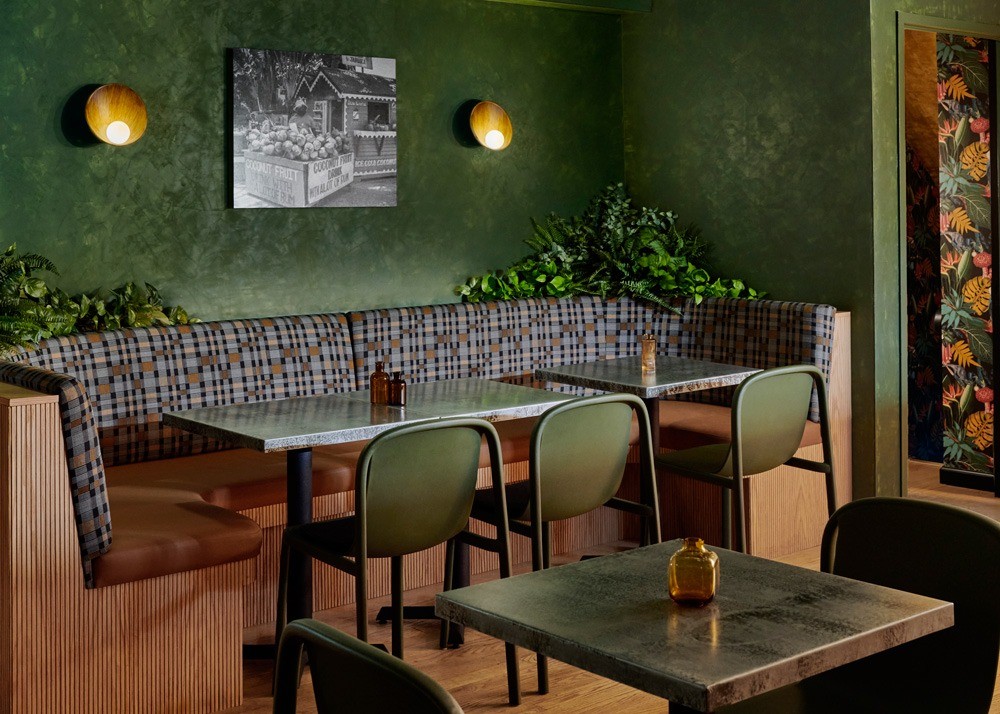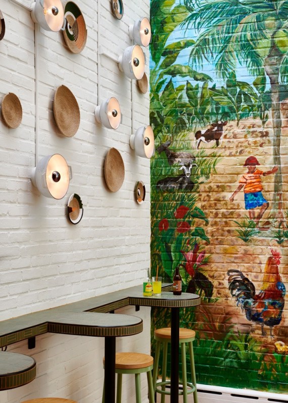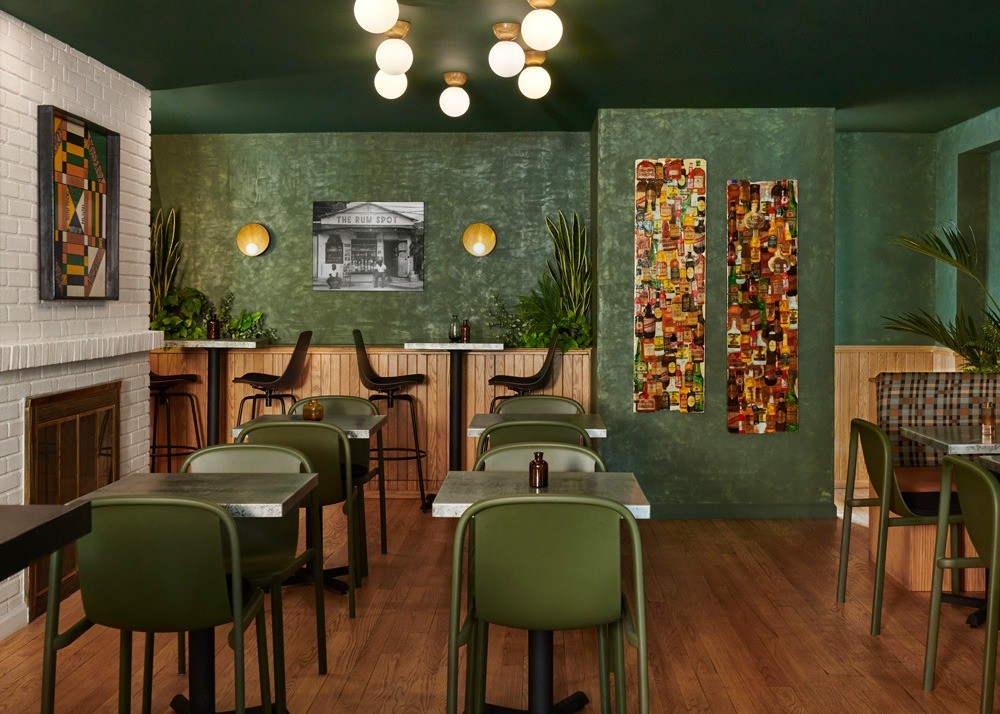 Studio For’s design concept resulted in the creation of three spaces within the restaurant. The reimagined spaces include a Corner Shop, a downstairs bar reminiscent of a Jamaican bodega, a main dining area upstairs that aims to be reminiscent of the feeling of a grandmother's dining room after Sunday Church, and an upper-level backbar designed to capture the essence of a local beach bar.