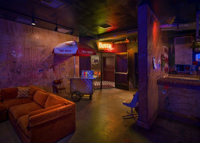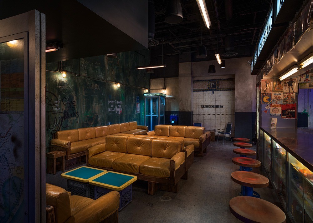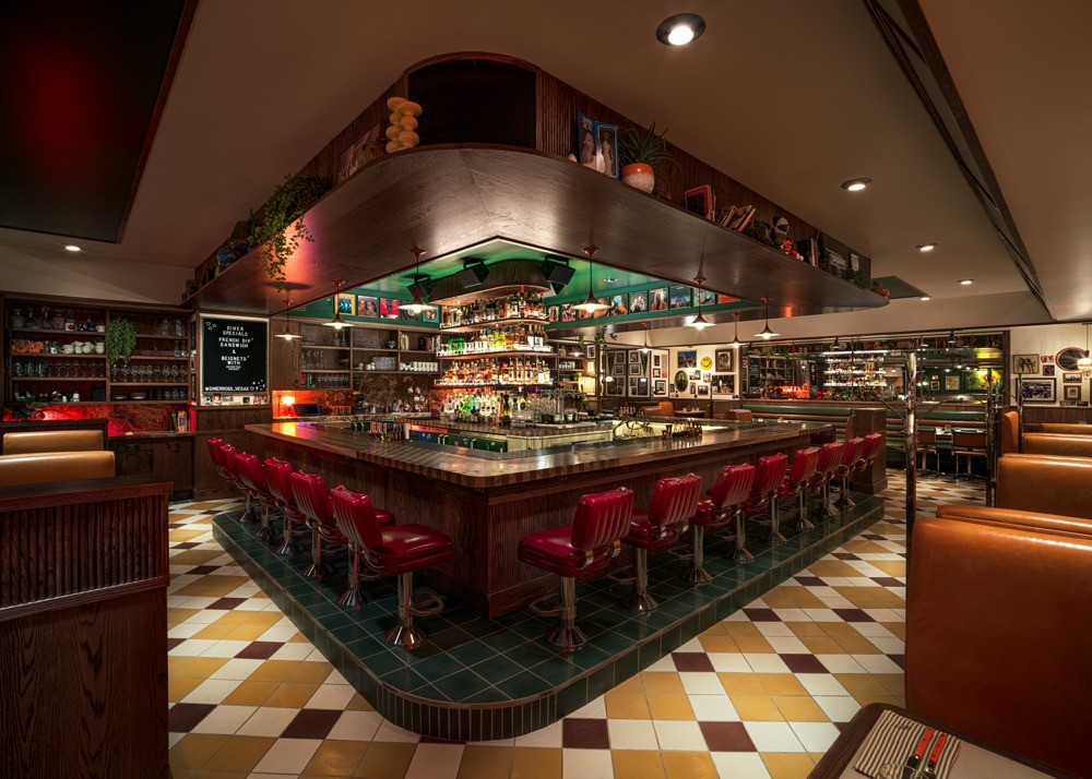 DISCOSHOW is a new immersive experience in Las Vegas from Spiegelworld, creators of Absinthe and other immersive entertainment and dining experiences. DISCOSHOW offers four distinct areas and one cohesive experience. Guests enter from The Linq Hotel’s gaming floor through a mirror-tiled entryway to land at 99 Prince, a speakeasy styled to look like a retro New York subway station and magazine stand complete with vintage magazines and candy. From there, guests head upstairs to The Glitterloft and DISCOSHOW where an expansive bar evokes warehouse parties of New York’s past and a “Saturday Night Fever”-inspired disco dance party takes center stage. A coterie of colorful characters — literally actors in costumes — roller skate on by. Finally, just off the bar, a retro diner cheekily named Diner Ross features nostalgic nods to the 1970s and New York’s diner culture and design.