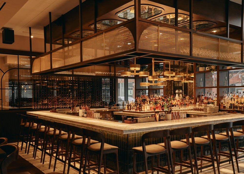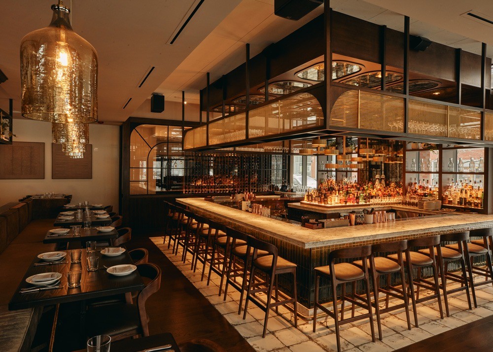 Design details and materials juxtapose Fulton Market’s industrial past and Rome’s storied heritage with layers of dark woods, plush fabrics, handmade tiles, natural stone and rich hues.