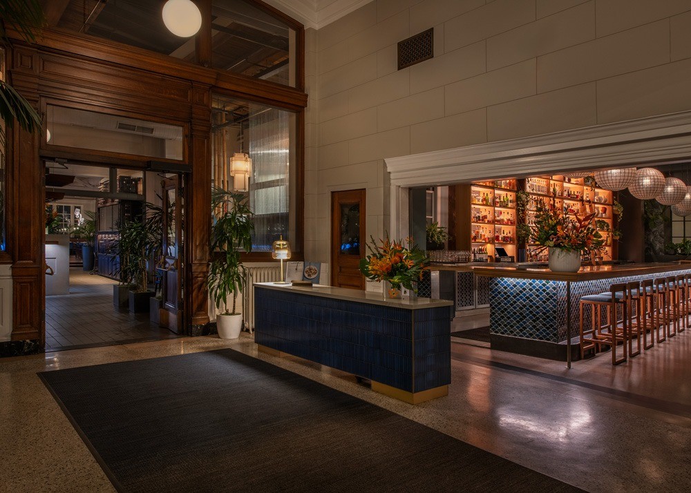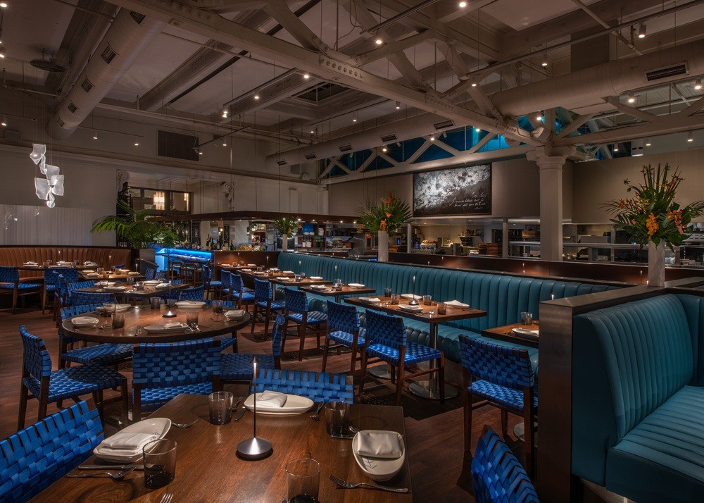 The refreshed interiors create a cohesive guest journey by unifying five key spaces: the bar, lobby, Chef’s Table, main dining room and outdoor patio. Design elements draw inspiration from Peru’s coastline and cultural vibrancy, with deep cyan ceramic tile, indigo-toned vinyl-coated banquettes and lighting inspired by the sea.