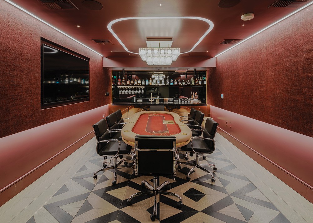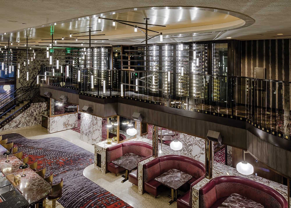 The dining area is large and offers a wide variety of comfortable seats, from private rooms to secluded booths to a cozy bar. Dining in the The Vault means being surrounded by members’ wine lockers, housing bottles accessed via a biometric security system. A second-floor loft offers a private space with top-quality A/V amenities for private screenings.