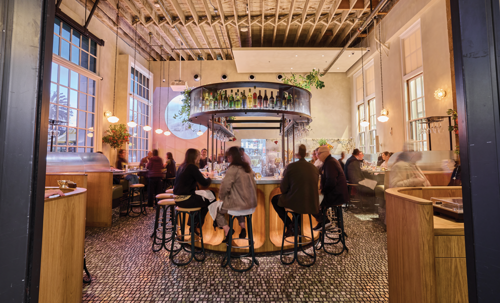 He also started, he says, with a “beautiful historic structure, a jewel box of a space, adjacent to the most significant promenade in the city.” The almost 1,300-square-foot, 50-seat space has high ceilings and large windows.