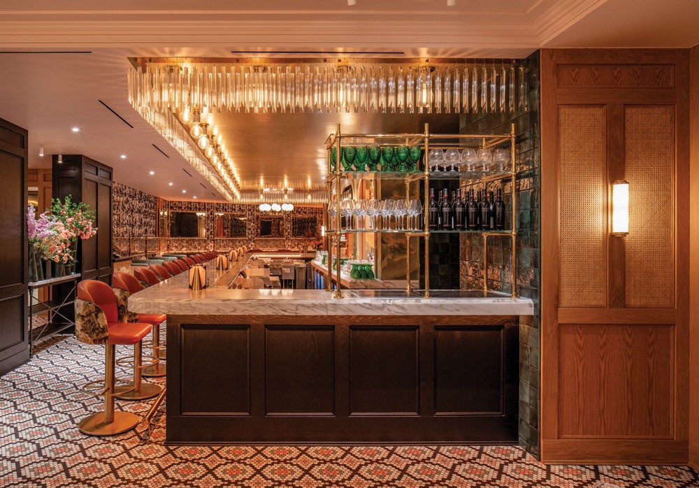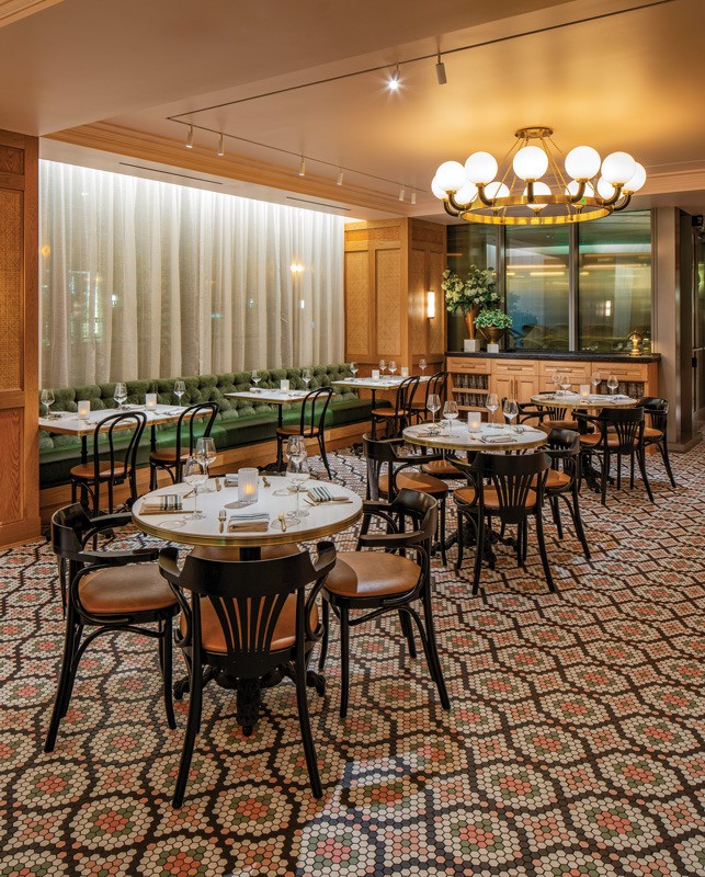 Bistro Du Jour in the Royal Sonesta hotel in Capitol Hill, is the second location of this small chain and “we wanted it to feel like the grown-up, older sister of the original restaurant,” says Meghan Scott, senior associate at Washington D.C.-based architecture and design firm //3877, who designed it along with KNEAD Hospitality.