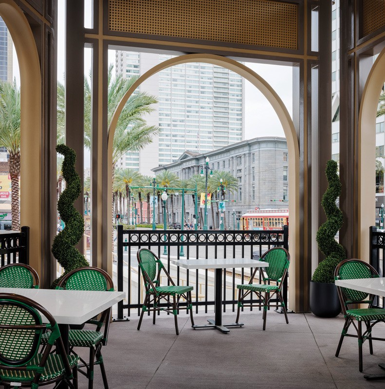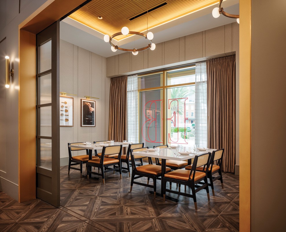Since Emeril Lagasse got his start in New Orleans, he wanted the brasserie to have some personal design features, which include a gallery wall of photographs and a signed chef’s coat over the host stand.