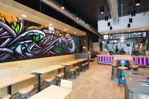 Designers incorporated five major consumer trends in the development of the concept beginning with the urbanization of the space to cater to a largely Millennial customer group. The restaurants are ideally suited to fit in pedestrian areas without drive-thru and showcase urban-inspired, mural artwork on the interior walls as well as local architecture to fall in line with the neighborhood setting.