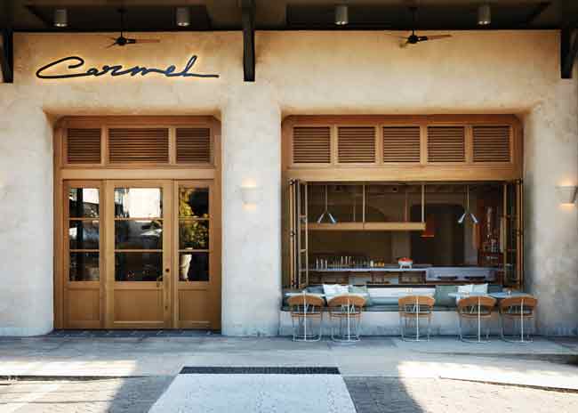Designed by owner/managing partner Kevin O’Connor and Los Angeles-based MASS Architecture & Design, the seasonal, New American-meets-vintage aestus opened in January 2016. aestus sits on the ground floor of Santa Monica’s distinctive, art deco-style Arezzo residential building. A mid-century, retro-chic charmer, design highlights include a long brass bar that seats 15, a spacious 60-seat dining room and open, marble-framed kitchen.