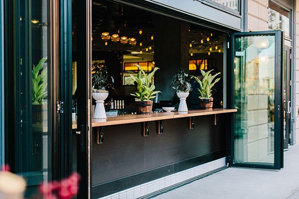 Both a neighborhood restaurant and a destination, Eastside is an elevated American brasserie located in a multiuse apartment building that required special consideration in sound, plumbing and lighting. Customer flow was a key concern as well, as was balancing the tension of high- and low-energy spaces. In warmer months, glass doors open and the bar flips out to create an outdoor bar and patio area.