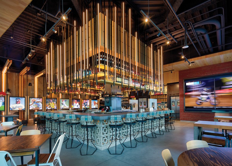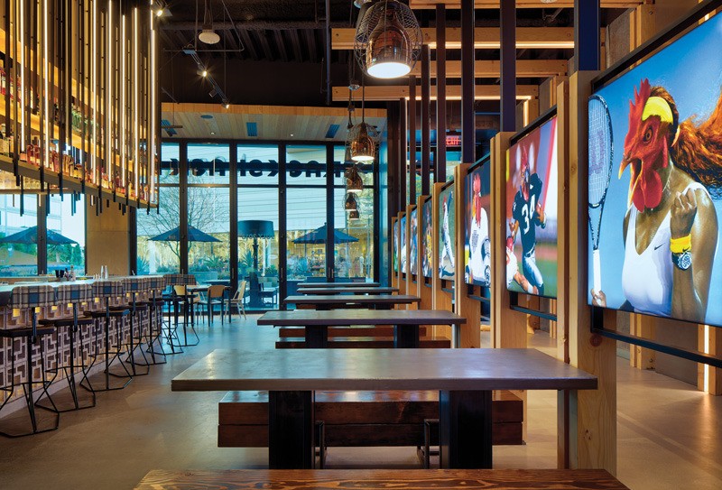 From its Moet & Chandon vending machine to its playful use of art, the 5,186-square-foot Crack Shack mixes rustic farmhouse with whimsical grace notes to serve its mix of “better” chicken and egg menu items. High ceilings and tall windows let natural light deep into the dining room where murals are “chickenized” satires of famous works of art and pop cultural iconography. The judges felt this concept was “fresh, irreverent” thanks to the design team’s “repurposing of old materials like the decorative block on the bar.” The judges also like the concept’s fresh approach to the restaurant’s art.